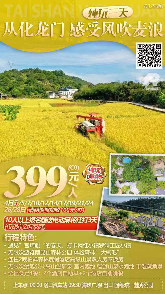上一篇:【五地聯(lián)游】粵西純玩3天游~排期4月6/13/20/27日逢周三 下一篇:?韶關(guān)經(jīng)律論溫泉、吃足四餐、純玩三天599元