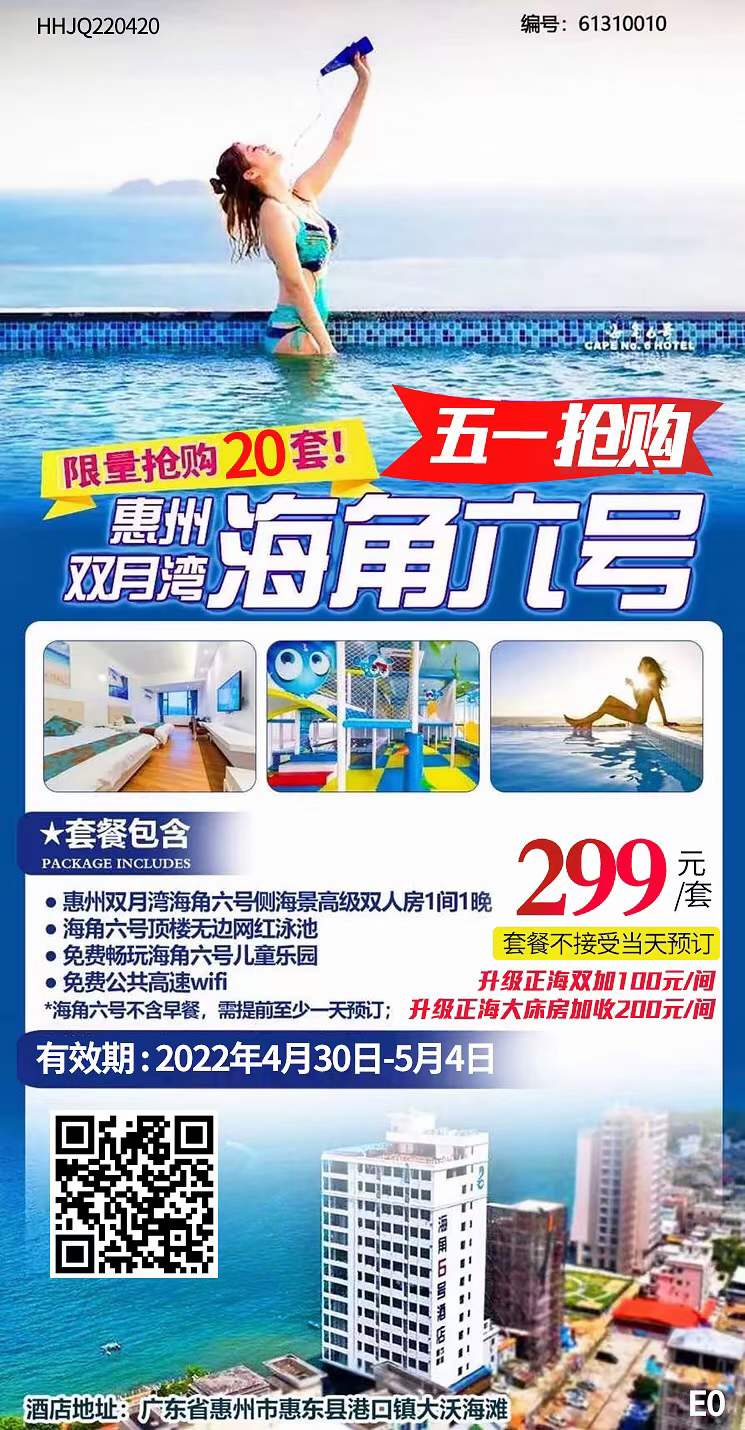 上一篇:?臺(tái)山頤和溫泉酒店五一特惠 860元/間 下一篇:惠州麗景國際花園酒店純玩2天5.1,5.3,5.14,鐵發(fā)??