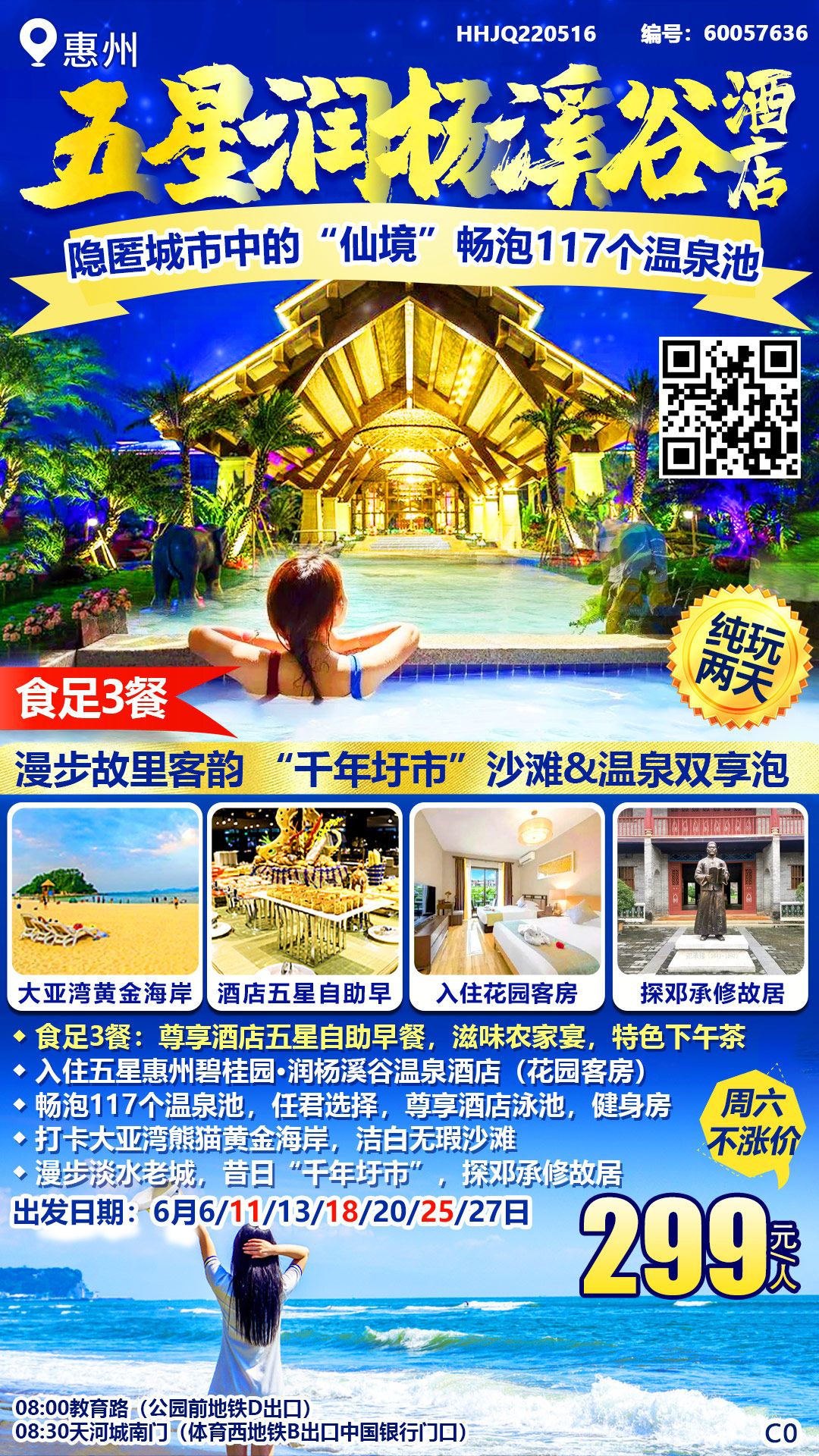 上一篇:?惠州三灣一島休閑純玩3天海龜灣、巽寮灣、雙月灣 下一篇:?純玩龍門林豐溫泉3天游399/人