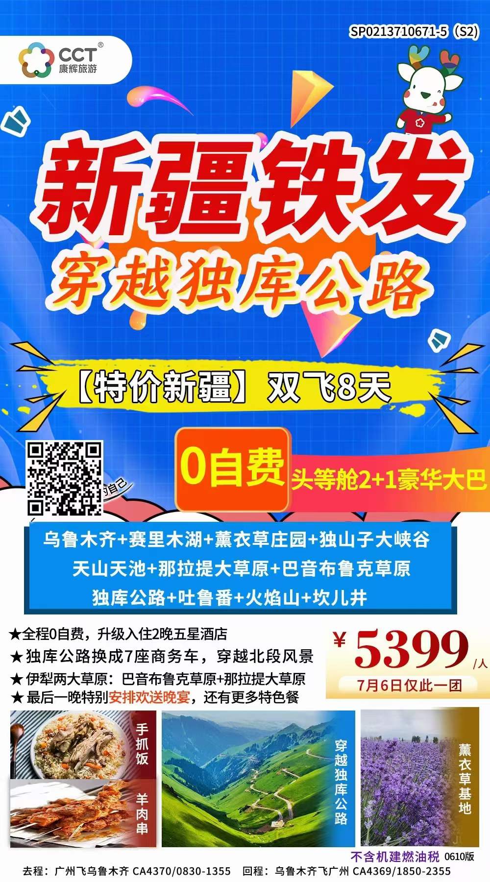 機票 廣州/深圳/珠海至烏魯木齊往返機票及機建稅, 06:00-20:00 之間航班, 具體航班以實際安排為準;