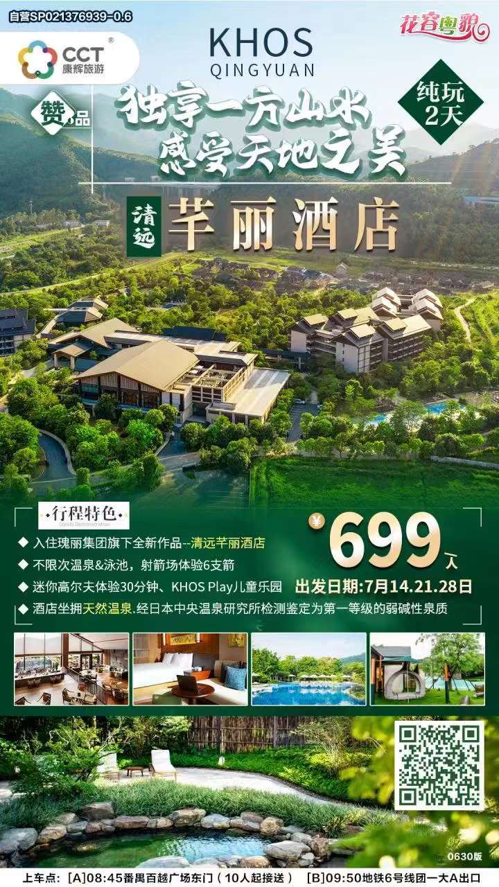早餐:× 午餐:× 晚餐:× 住宿:√清遠(yuǎn)芊麗酒店或其他備選酒店