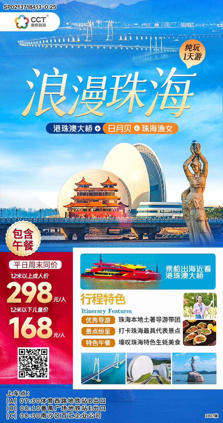 珠海漁女,日月貝大劇院,香爐灣沙灘,船游港珠澳大橋1日游