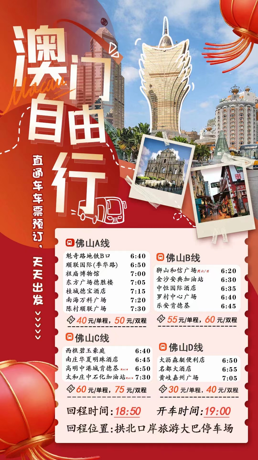 澳門(mén)自由行單程45,雙程49,掃碼關(guān)注可自主在線實(shí)時(shí)預(yù)定