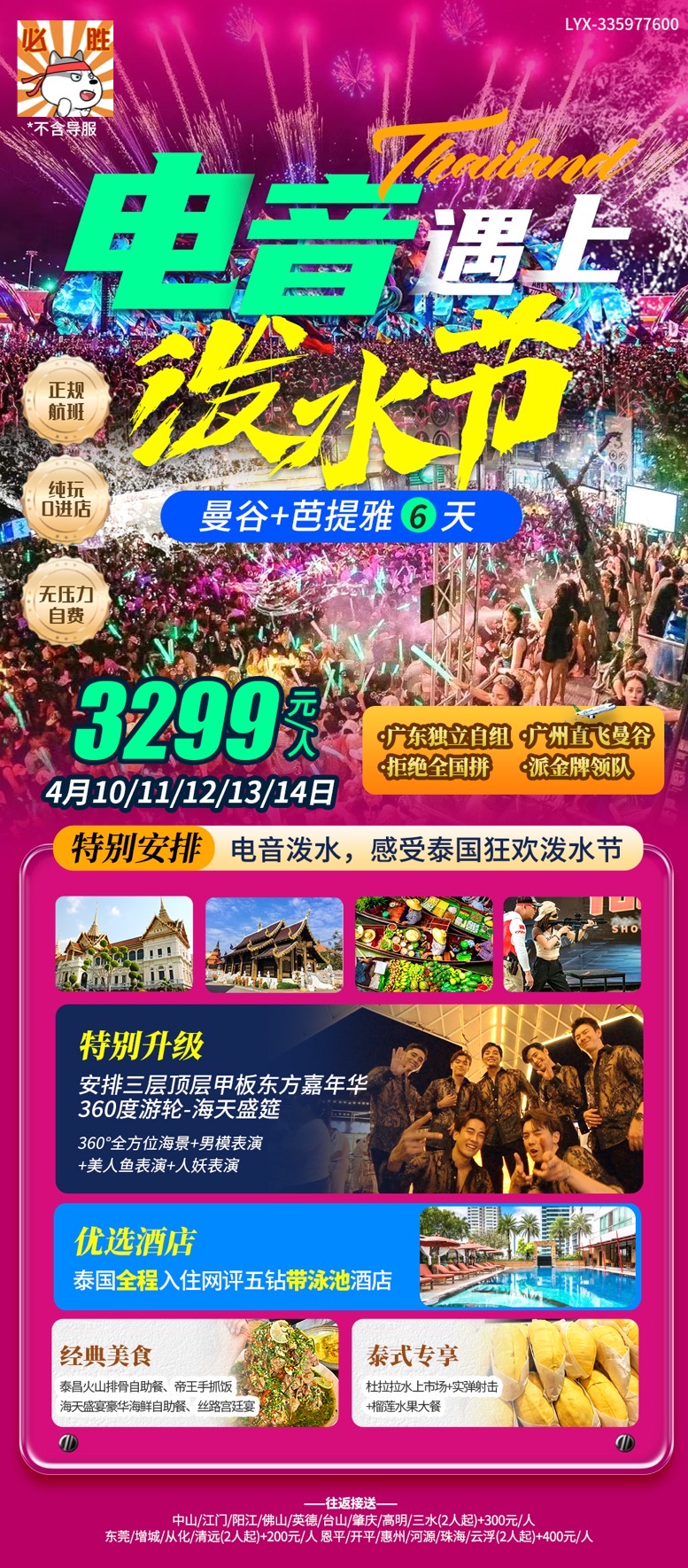 今日推薦:【電音遇上潑水】泰國曼谷+芭堤雅6天純玩0店