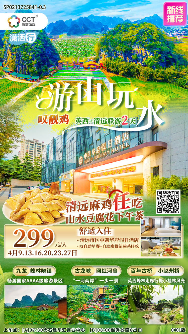 第1天:集中出發(fā)---英西峰林---午餐---峰林曉鎮(zhèn)---廣九豆工坊(下午茶)—入住清遠(yuǎn)中凱華府酒店。(含酒店自助晚餐)