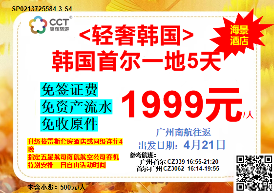 <定制團輕奢韓國>韓國首爾一地5天4晚(廣州往返)-特惠