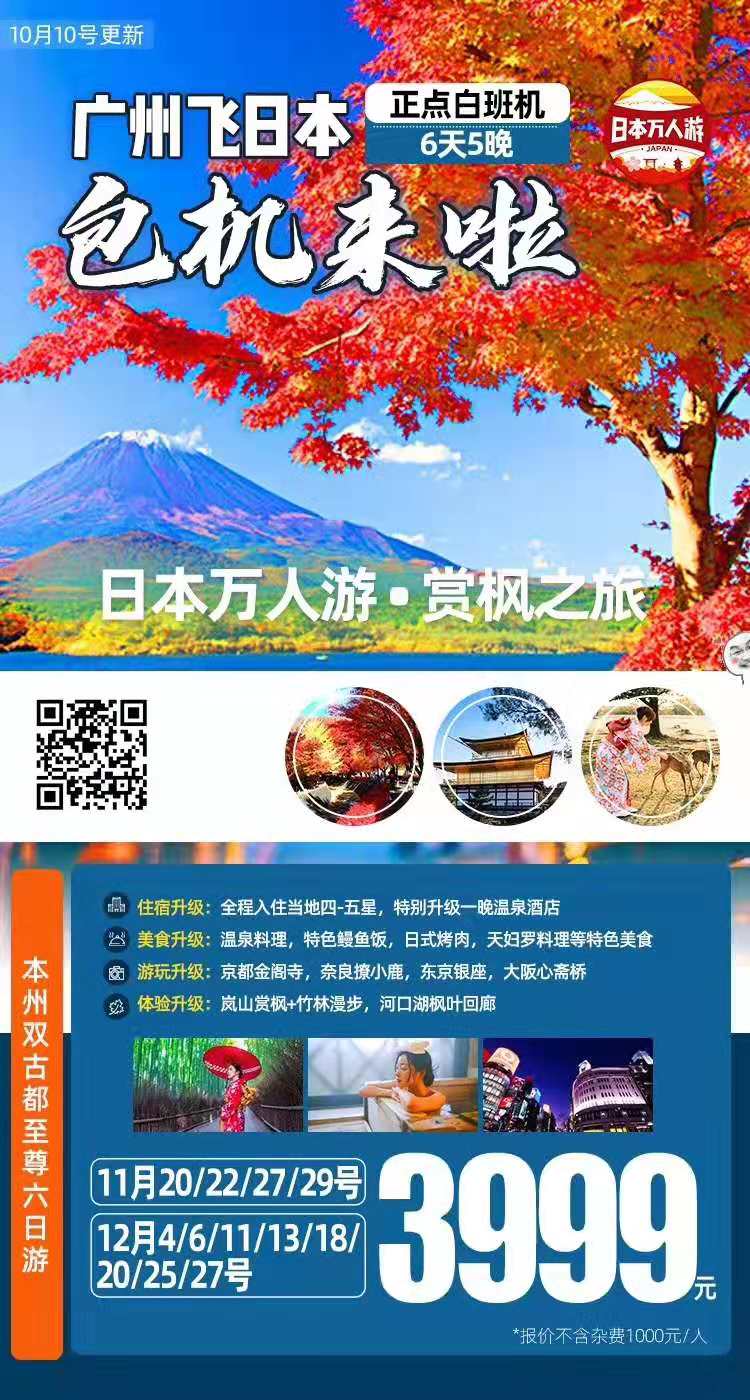 廣州飛日本包機(jī)本州東京大阪至尊六日游(東京,名古屋,富士山,橫濱,京都,奈良,大阪)