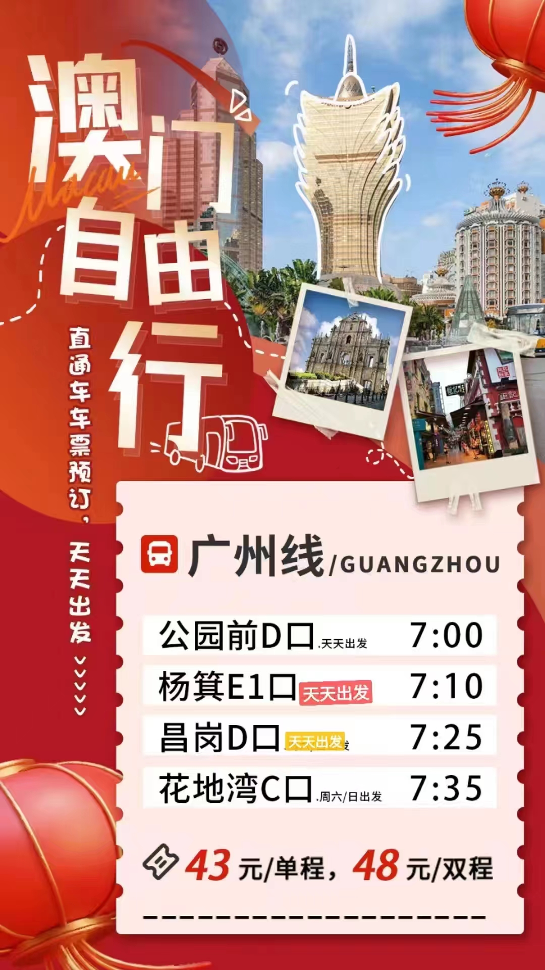 廣州到澳門天天出發(fā) 廣州到香港也是天天出發(fā) 公眾號和客服都客服都可以預(yù)定