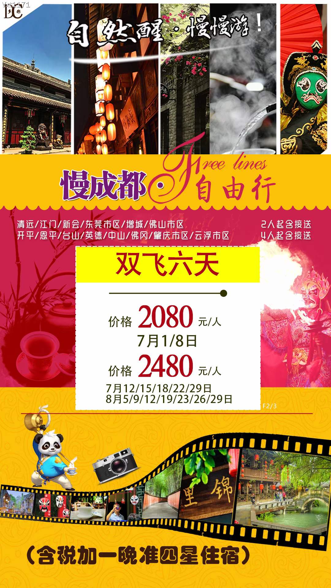 成都自由行+一晚酒店住宿