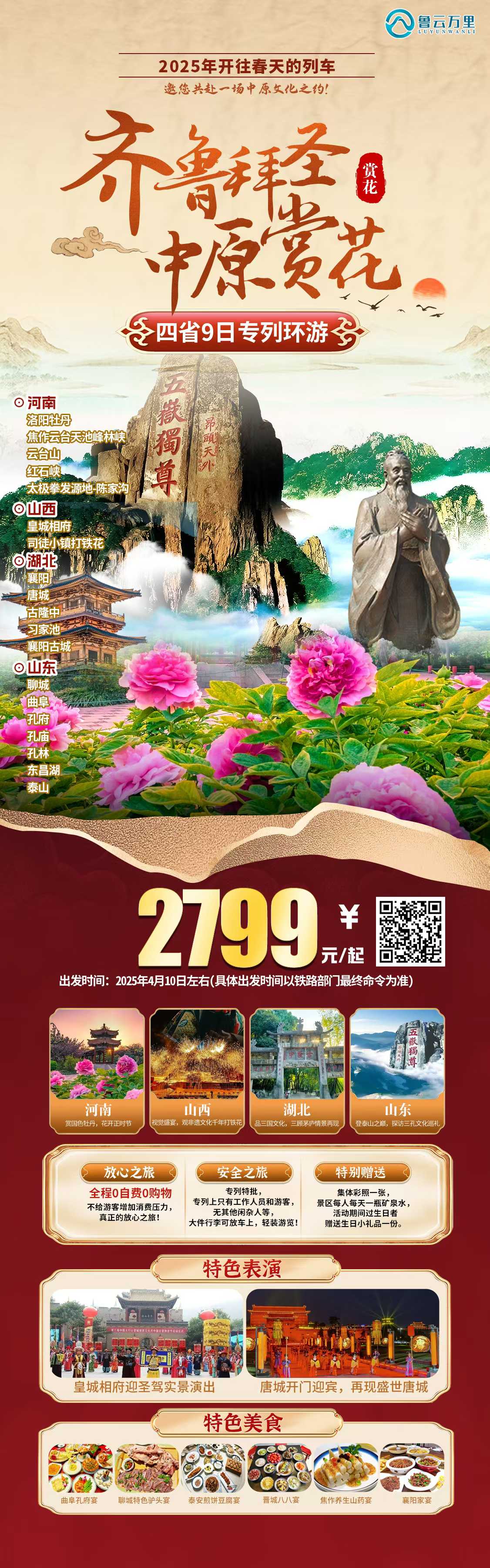 ??【齊魯拜圣 中原賞花】四省9天專列游!