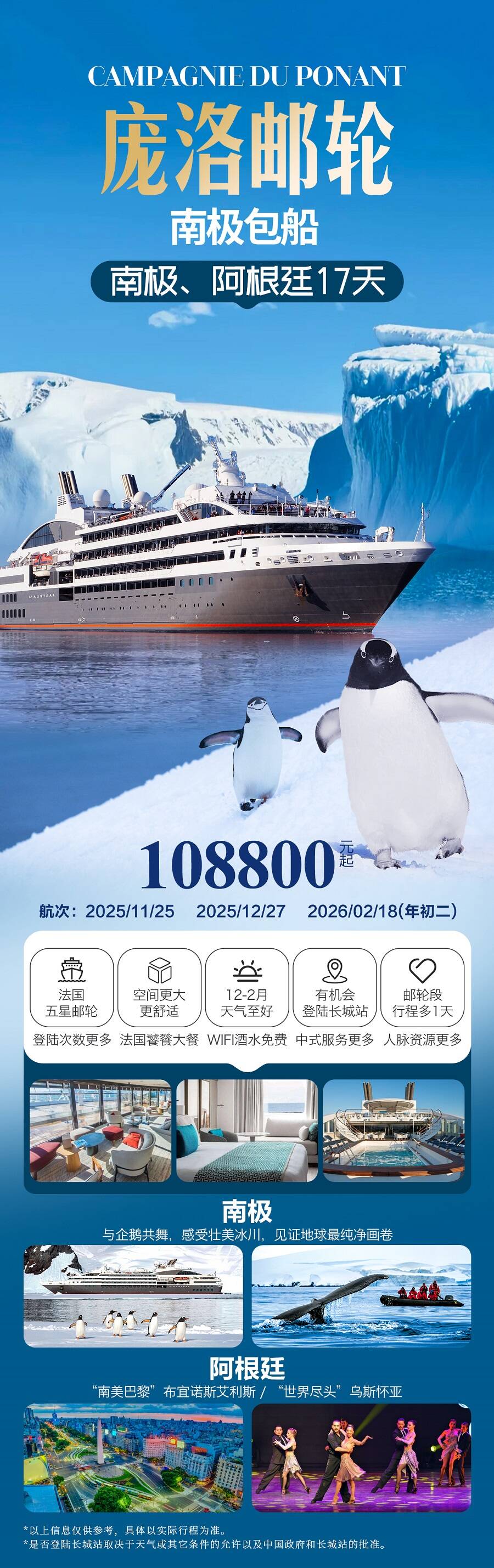 夢(mèng)幻南極,觸手可及!乘坐五星法國(guó)龐洛郵輪,讓夢(mèng)想揚(yáng)帆遠(yuǎn)航。